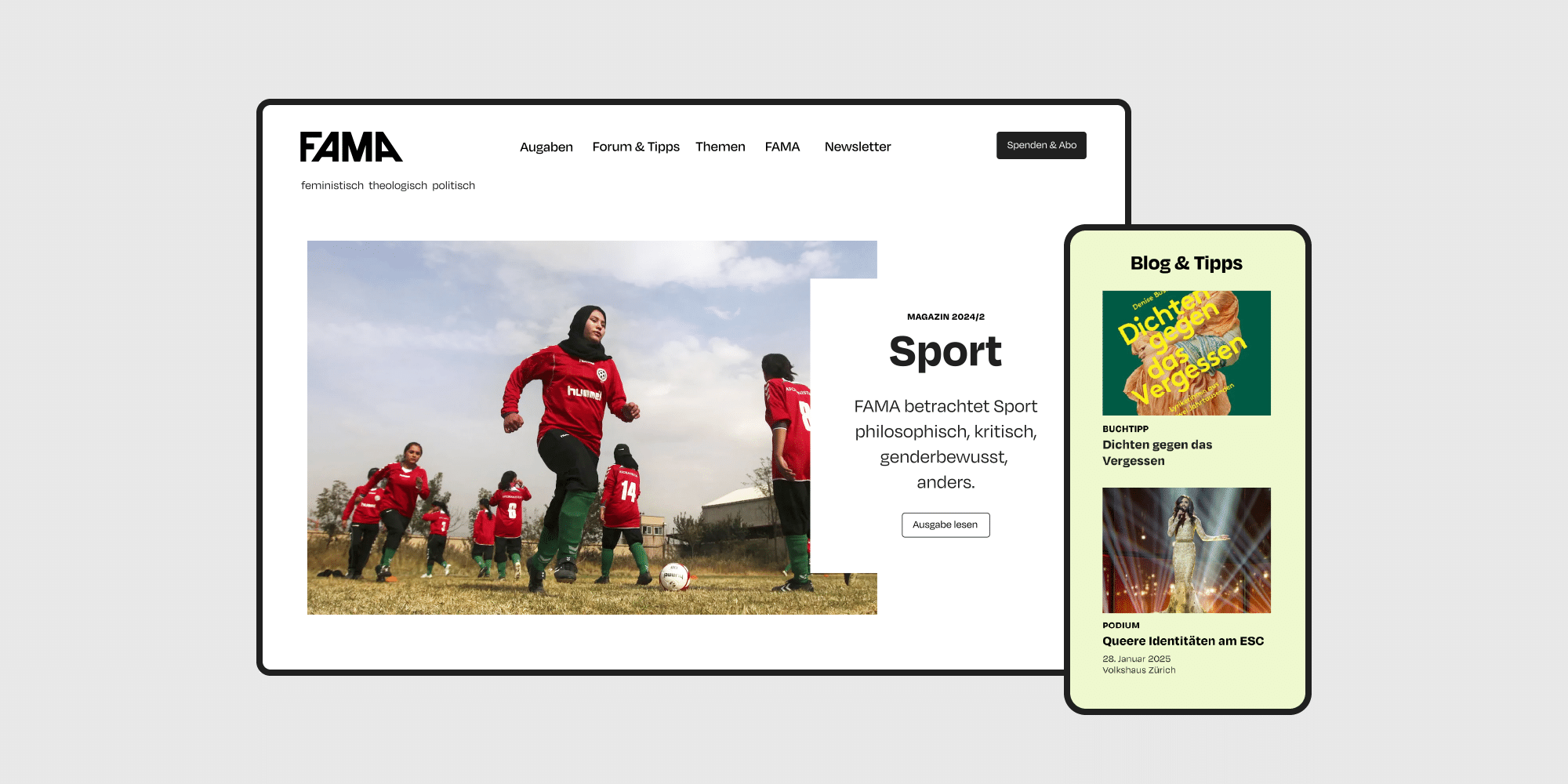 FAMA ist die feministisch-theologische Publikation der Schweiz. Nach über 40 Jahren engagierter Arbeit haben wir die Ausrichtung der Organisation neu beleuchtet. Daraus ist eine Online-Plattform entstanden, die nicht nur inspiriert, sondern auch viele Tipps zu relevanten Themen bietet.